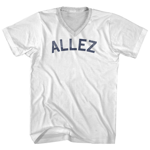 Product Story: Allez Adult Cotton V-neck T-shirtProduct Description: Allez Adult Cotton V-neck T-shirt Tri-Blend (Polyester, Rayon, Cotton) Buttery Smooth Soft Material Medium Weight Tee Soft Hand Print