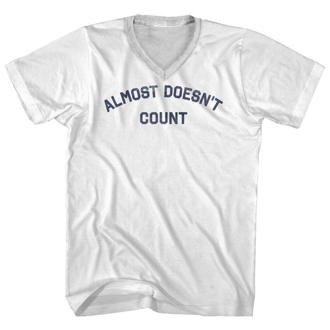 Product Story: Almost Doesn't Count Adult Cotton V-neck T-shirtProduct Description: Almost Doesn't Count Adult Cotton V-neck T-shirt Cotton Buttery Smooth Soft Material Medium Weight Tee Soft Hand Print