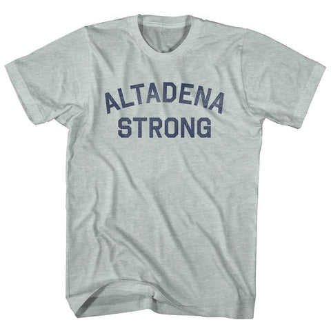 Product Story: Altadena Strong Adult Tri-Blend T-shirtProduct Description: Altadena Strong Adult Tri-Blend T-shirt Tri-Blend (Polyester, Rayon, Cotton) Buttery Smooth Soft Material Medium Weight Tee Soft Hand Print