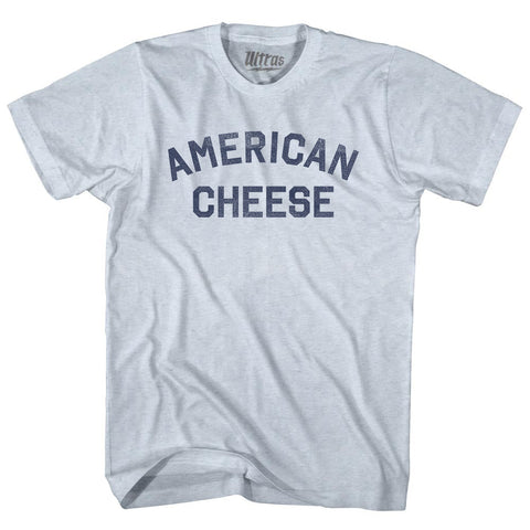 Product Story: American Cheese Adult Tri-Blend T-shirtProduct Description: American Cheese Adult Tri-Blend T-shirt Tri-Blend (Polyester, Rayon, Cotton) Buttery Smooth Soft Material Medium Weight Tee Soft Hand Print