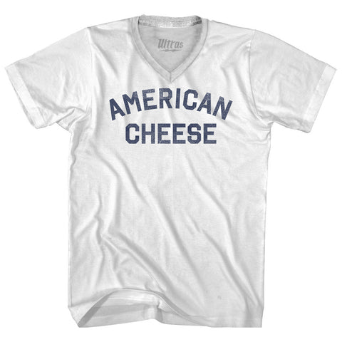 Product Story: American Cheese Adult Tri-Blend V-neck T-shirtProduct Description: American Cheese Adult Tri-Blend V-neck T-shirt Tri-Blend (Polyester, Rayon, Cotton) Buttery Smooth Soft Material Medium Weight Tee Soft Hand Print