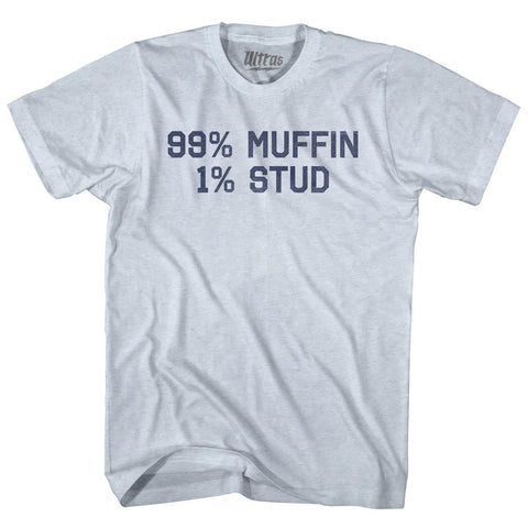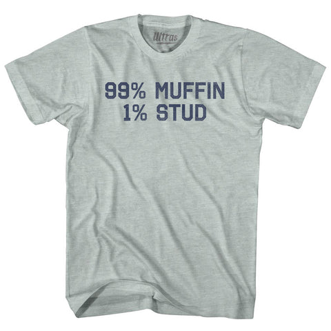 Product Story: 99% Muffin 1% Stud Adult Tri-Blend T-shirtProduct Description: 99% Muffin 1% Stud Adult Tri-Blend T-shirt Tri-Blend (Polyester, Rayon, Cotton) Buttery Smooth Soft Material Medium Weight Tee Soft Hand Print