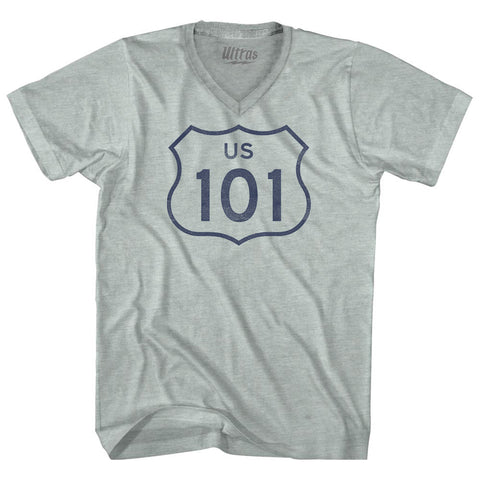 Product Story: 101 Road Sign Adult Tri-Blend V-neck T-shirtProduct Description: 101 Road Sign Adult Tri-Blend V-neck T-shirt Tri-Blend (Polyester, Rayon, Cotton) Buttery Smooth Soft Material Medium Weight Tee Soft Hand Print