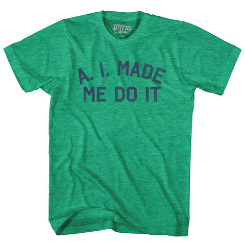 Product Story: A. I. Made Me Do It Adult Tri-Blend T-shirtProduct Description: A. I. Made Me Do It Adult Tri-Blend T-shirt Tri-Blend (Polyester, Rayon, Cotton) Buttery Smooth Soft Material Medium Weight Tee Soft Hand Print