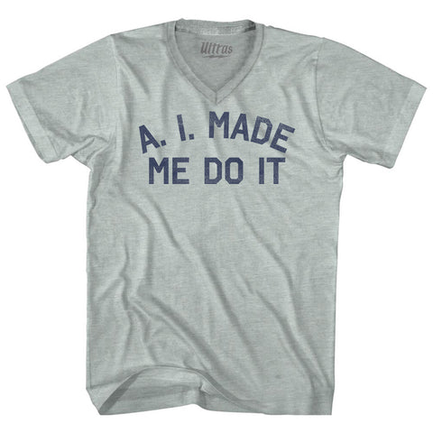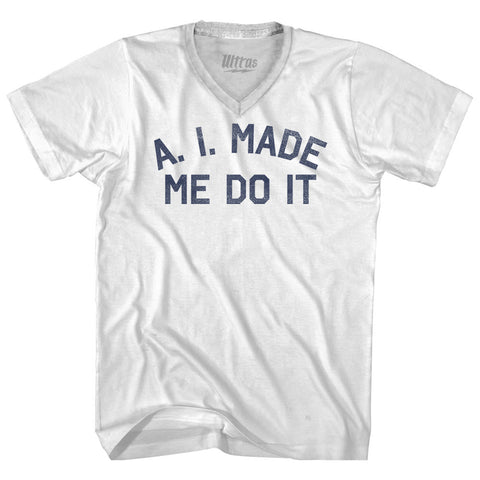 Product Story: A. I. Made Me Do It Adult Tri-Blend V-neck T-shirtProduct Description: A. I. Made Me Do It Adult Tri-Blend V-neck T-shirt Tri-Blend (Polyester, Rayon, Cotton) Buttery Smooth Soft Material Medium Weight Tee Soft Hand Print