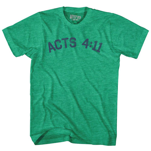 Product Story: Acts 4 11 Adult Tri-Blend T-shirtProduct Description: Acts 4 11 Adult Tri-Blend T-shirt Tri-Blend (Polyester, Rayon, Cotton) Buttery Smooth Soft Material Medium Weight Tee Soft Hand Print