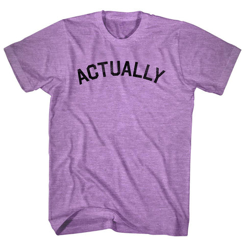 Product Story: Actually Adult Tri-Blend T-shirtProduct Description: Actually Adult Tri-Blend T-shirt Tri-Blend (Polyester, Rayon, Cotton) Buttery Smooth Soft Material Medium Weight Tee Soft Hand Print