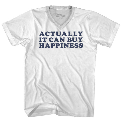 Product Story: Actually It Can Buy Happiness Adult Tri-Blend V-neck T-shirtProduct Description: Actually It Can Buy Happiness Adult Tri-Blend V-neck T-shirt Tri-Blend (Polyester, Rayon, Cotton) Buttery Smooth Soft Material Medium Weight Tee Soft Hand Print