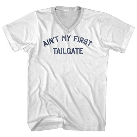 Product Story: Ain't My First Tailgate Adult Cotton V-neck T-shirtProduct Description: Ain't My First Tailgate Adult Cotton V-neck T-shirt Tri-Blend (Polyester, Rayon, Cotton) Buttery Smooth Soft Material Medium Weight Tee Soft Hand Print