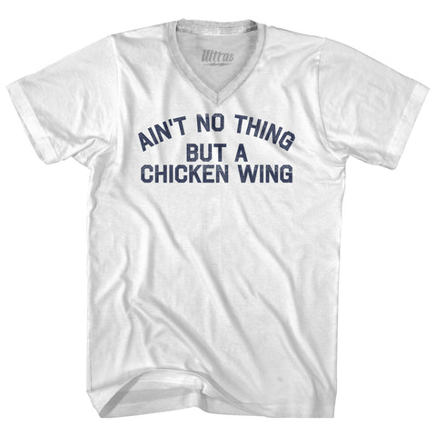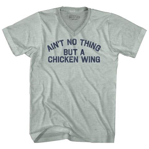 Product Story: Ain't No Thing But A Chicken Wing Adult Tri-Blend V-neck T-shirtProduct Description: Ain't No Thing But A Chicken Wing Adult Tri-Blend V-neck T-shirt Tri-Blend (Polyester, Rayon, Cotton) Buttery Smooth Soft Material Medium Weight Tee Soft Hand Print