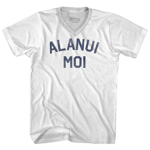 Product Story: Alanui Moi Adult Tri-Blend V-neck T-shirtProduct Description: Alanui Moi Adult Tri-Blend V-neck T-shirt Tri-Blend (Polyester, Rayon, Cotton) Buttery Smooth Soft Material Medium Weight Tee Soft Hand Print