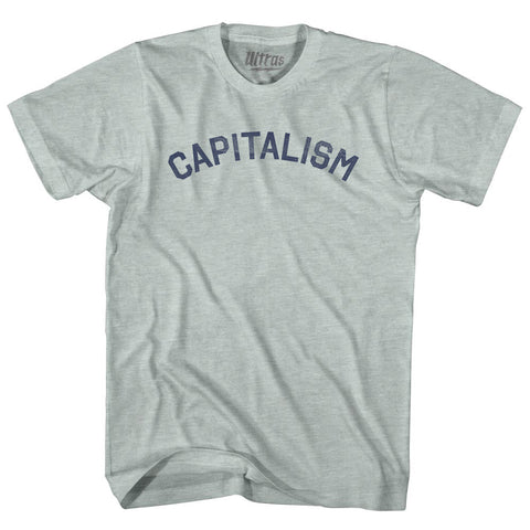 Product Story: Capitalism Adult Tri-Blend T-shirtProduct Description: Capitalism Adult Tri-Blend T-shirt Tri-Blend (Polyester, Rayon, Cotton) Buttery Smooth Soft Material Medium Weight Tee Soft Hand Print
