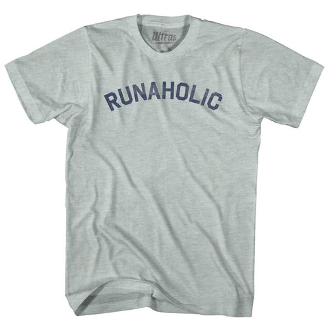 Product Story: Runaholic Adult Tri-Blend T-shirtProduct Description: Runaholic Adult Tri-Blend T-shirt Tri-Blend (Polyester, Rayon, Cotton) Buttery Smooth Soft Material Medium Weight Tee Soft Hand Print