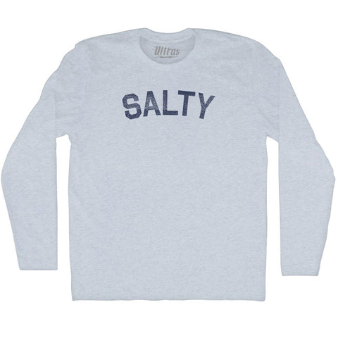 Product Story: Salty Adult Tri-Blend Long Sleeve T-shirtProduct Description: Salty Adult Tri-Blend Long Sleeve T-shirt Tri-Blend (Polyester, Rayon, Cotton) Buttery Smooth Soft Material Medium Weight Tee Soft Hand Print