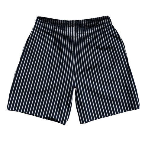 Product Story: Pinstripes Swim Shorts 7" Made in USAProduct Description: Pinstripes Swim Shorts 7" Made in USA 7'' Inseam & 20" Tall Swim Trunks Board Shorts Bathing Suits Swim Suits Quick Drying Material Stretch Polyester Elastic Waistband Drawstring Side Pockets Made In USA
