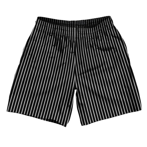 Product Story: Pinstripes 5" Swim Shorts Made in USAProduct Description: Pinstripes 5" Swim Shorts Made in USA 5" Inseam & 17.5" Tall Swim Trunks Board Shorts Bathing Suits Swim Suits Quick Drying Material Stretch Polyester Elastic Waistband Drawstring Side Pockets Made In USA