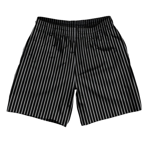 Product Story: Pinstripes 5" Swim Shorts Made in USAProduct Description: Pinstripes 5" Swim Shorts Made in USA 5" Inseam & 17.5" Tall Swim Trunks Board Shorts Bathing Suits Swim Suits Quick Drying Material Stretch Polyester Elastic Waistband Drawstring Side Pockets Made In USA