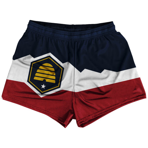 Product Story: Utah New Flag Shorts Womens & Girls Sport Shorts End Made In USAProduct Description: Utah New Flag Shorts Womens & Girls Sport Shorts End Made In USA Athletic Shorts Micro-Fiber Polyester Cooling Material Premium Lacrosse Product Elastic Drawstring Made in USA