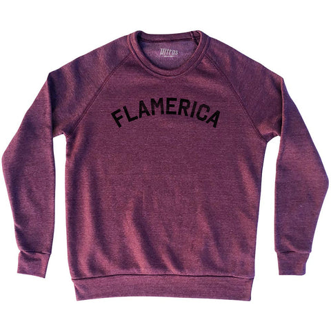 Product Story: Flamerica Adult Tri-Blend SweatshirtProduct Description: Flamerica Adult Tri-Blend Sweatshirt Tri-Blend (Polyester, Rayon, Cotton) Buttery Smooth Soft Material Medium Weight Tee Soft Hand Print