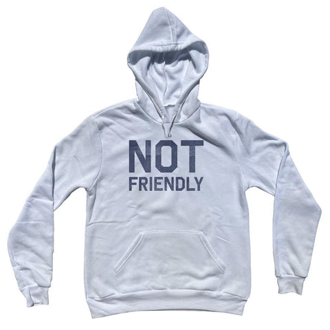 Product Story: Not Friendly Tri-Blend Hoodie Product Description: Not Friendly Tri-Blend Hoodie 6.5 oz. Tri-Blend Cozy Soft Material Pre-Shrunk Set-in sleeves Pouch front pocket Ribbed bottom band and sleeve cuffs