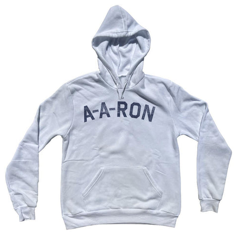 Product Story: A-A-RON (Aaron Nickname) Cotton-Poly Blend HoodieProduct Description: A-A-RON (Aaron Nickname) Cotton-Poly Blend Hoodie 6.5 oz. Tri-Blend Cozy Soft Material Pre-Shrunk Set-in sleeves Pouch front pocket Ribbed bottom band and sleeve cuffs