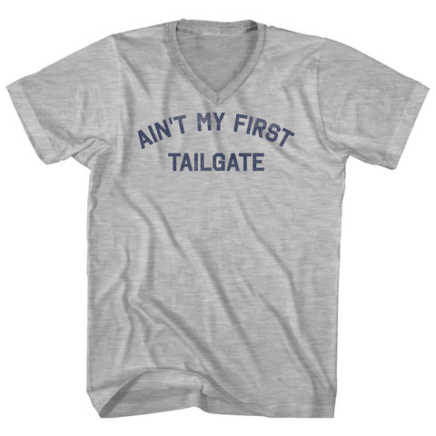 Product Story: Ain't My First Tailgate Adult Cotton V-neck T-shirtProduct Description: Ain't My First Tailgate Adult Cotton V-neck T-shirt Cotton Buttery Smooth Soft Material Medium Weight Tee Soft Hand Print