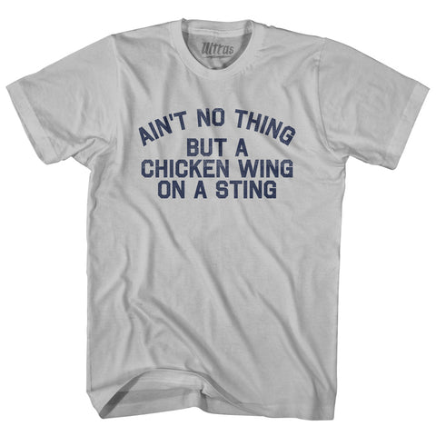 Product Story: Ain't No Thing But A Chicken Wing On A Sting Adult Cotton T-shirtProduct Description: Ain't No Thing But A Chicken Wing On A Sting Adult Cotton T-shirt Cotton (90% Cotton &10% Polyester) Buttery Smooth Soft Material Medium Weight Tee Soft Hand Print