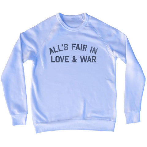 Product Story: All's Fair In Love And War Adult Tri-Blend SweatshirtProduct Description: All's Fair In Love And War Adult Tri-Blend Sweatshirt Cotton Buttery Smooth Soft Material Medium Weight Tee Soft Hand Print