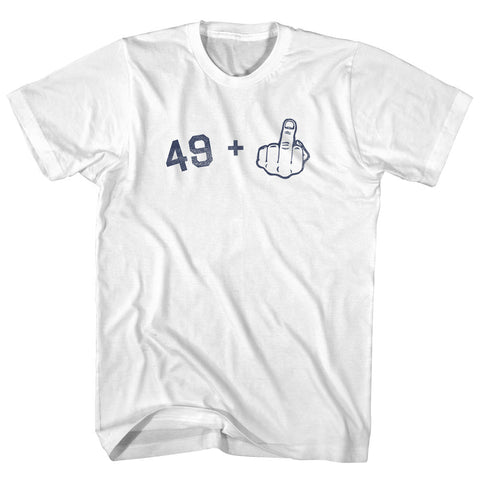 Product Story: 49 + Middle Finger Adult Cotton T-shirtProduct Description: 49 + Middle Finger Adult Cotton T-shirt Cotton Buttery Smooth Soft Material Medium Weight Tee Soft Hand Print