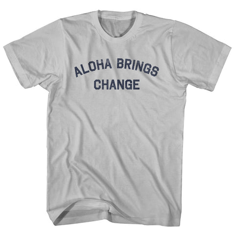 Product Story: Aloha Brings Change Adult Cotton T-shirtProduct Description: Aloha Brings Change Adult Cotton T-shirt Cotton (90% Cotton &10% Polyester) Buttery Smooth Soft Material Medium Weight Tee Soft Hand Print