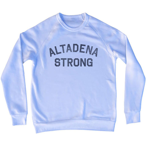 Product Story: Altadena Strong Adult Tri-Blend SweatshirtProduct Description: Altadena Strong Adult Tri-Blend Sweatshirt Cotton Buttery Smooth Soft Material Medium Weight Tee Soft Hand Print