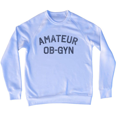Product Story: Amateur OB-GYN Adult Tri-Blend SweatshirtProduct Description: Amateur OB-GYN Adult Tri-Blend Sweatshirt Cotton Buttery Smooth Soft Material Medium Weight Tee Soft Hand Print