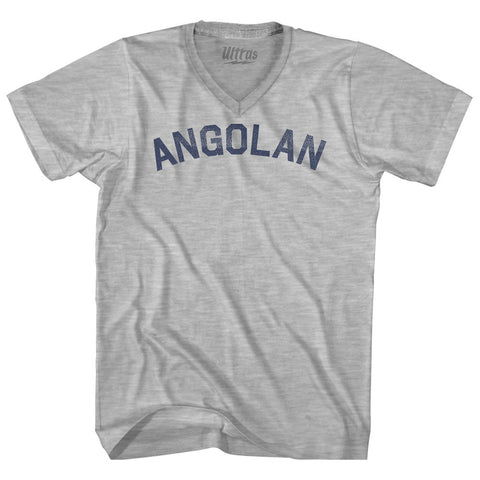 Product Story: Angolan Adult Cotton V-neck T-shirtProduct Description: Angolan Adult Cotton V-neck T-shirt Cotton Buttery Smooth Soft Material Medium Weight Tee Soft Hand Print
