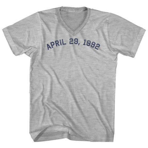 Product Story: April 29, 1992 Adult Cotton V-neck T-shirtProduct Description: April 29, 1992 Adult Cotton V-neck T-shirt Cotton Buttery Smooth Soft Material Medium Weight Tee Soft Hand Print