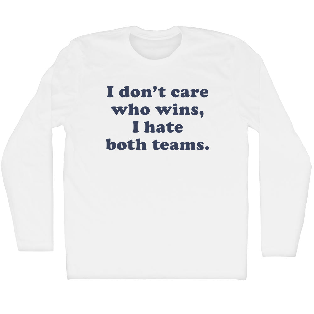 - I Don't Care Who Wins, I Hate Both Teams. Custom Cooper Font Adult Cotton Long Sleeve T-shirt