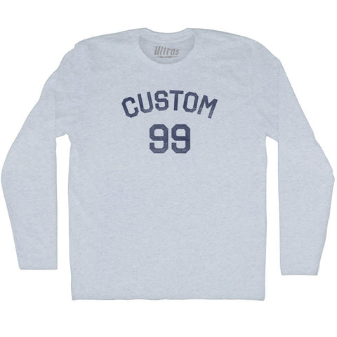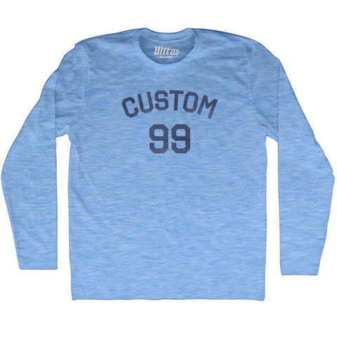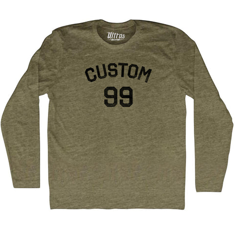 Product Story: Custom Text Over Custom Number Adult Tri-Blend Long Sleeve T-shirtProduct Description: Custom Text Over Custom Number Adult Tri-Blend Long Sleeve T-shirt Tri-Blend (Polyester, Rayon, Cotton) Buttery Smooth Soft Material Medium Weight Tee Soft Hand Print