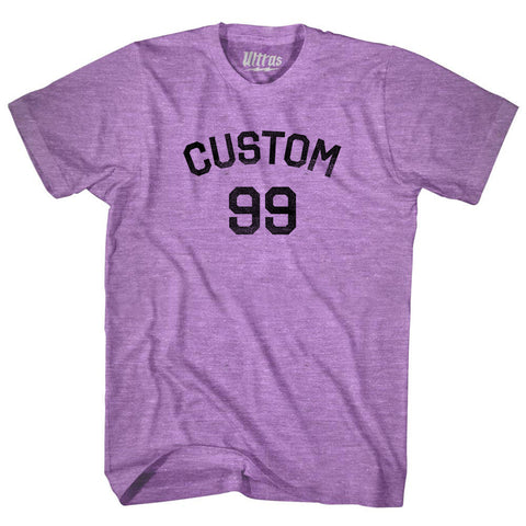 Product Story: Custom Text Over Custom Number Adult Tri-Blend T-shirtProduct Description: Custom Text Over Custom Number Adult Tri-Blend T-shirt Tri-Blend (Polyester, Rayon, Cotton) Buttery Smooth Soft Material Medium Weight Tee Soft Hand Print