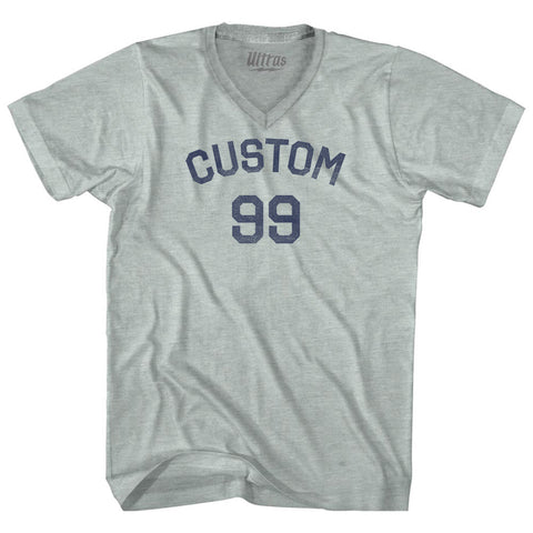 Product Story: Custom Text Over Custom Number Adult Tri-Blend V-neck T-shirtProduct Description: Custom Text Over Custom Number Adult Tri-Blend V-neck T-shirt Tri-Blend (Polyester, Rayon, Cotton) Buttery Smooth Soft Material Medium Weight Tee Soft Hand Print