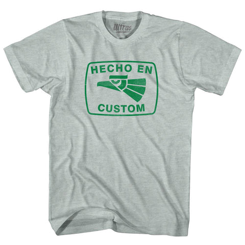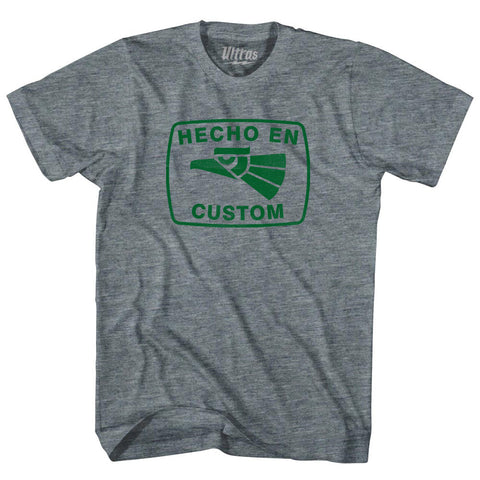 Product Story: Custom Hecho En Adult Tri-Blend T-shirtProduct Description: Custom Hecho En Adult Tri-Blend T-shirt Tri-Blend (Polyester, Rayon, Cotton) Buttery Smooth Soft Material Medium Weight Tee Soft Hand Print