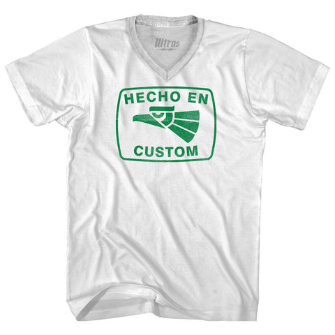 Product Story: Custom Hecho En Adult Cotton V-neck T-shirtProduct Description: Custom Hecho En Adult Cotton V-neck T-shirt Cotton Buttery Smooth Soft Material Medium Weight Tee Soft Hand Print
