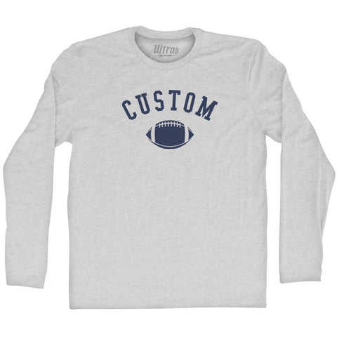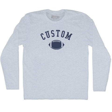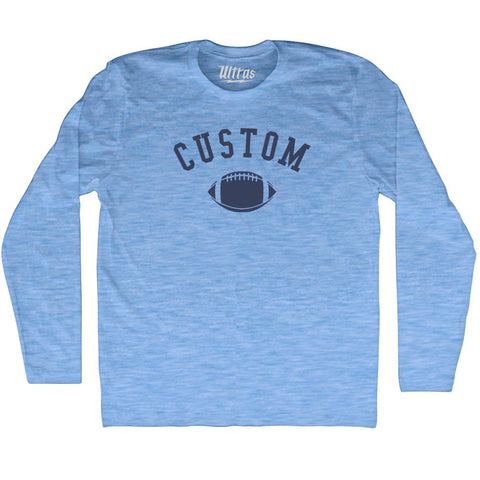 Product Story: Custom Football Adult Tri-Blend Long Sleeve T-shirtProduct Description: Custom Football Adult Tri-Blend Long Sleeve T-shirt Tri-Blend (Polyester, Rayon, Cotton) Buttery Smooth Soft Material Medium Weight Tee Soft Hand Print