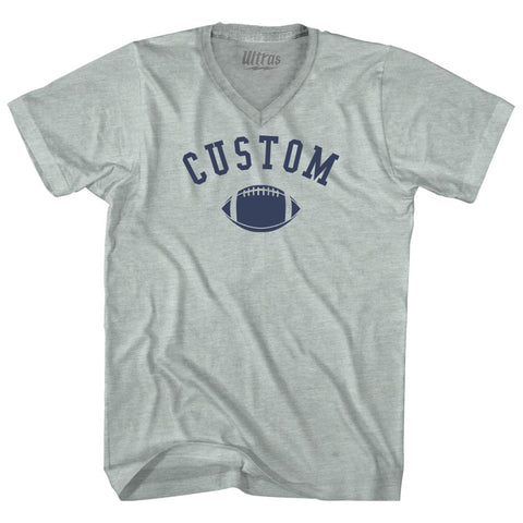 Product Story: Custom Football Adult Tri-Blend V-neck T-shirtProduct Description: Custom Football Adult Tri-Blend V-neck T-shirt Tri-Blend (Polyester, Rayon, Cotton) Buttery Smooth Soft Material Medium Weight Tee Soft Hand Print