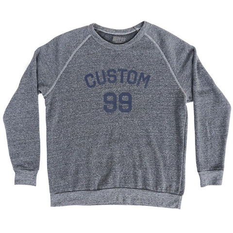 Product Story: Custom Text Over Custom Number Adult Tri-Blend SweatshirtProduct Description: Custom Text Over Custom Number Adult Tri-Blend Sweatshirt Tri-Blend (Polyester, Rayon, Cotton) Buttery Smooth Soft Material Medium Weight Tee Soft Hand Print