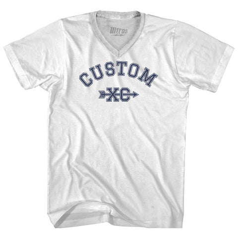 Product Story: Custom Cross Country XC Adult Cotton V-neck T-shirtProduct Description: Custom Cross Country XC Adult Cotton V-neck T-shirt Cotton Buttery Smooth Soft Material Medium Weight Tee Soft Hand Print