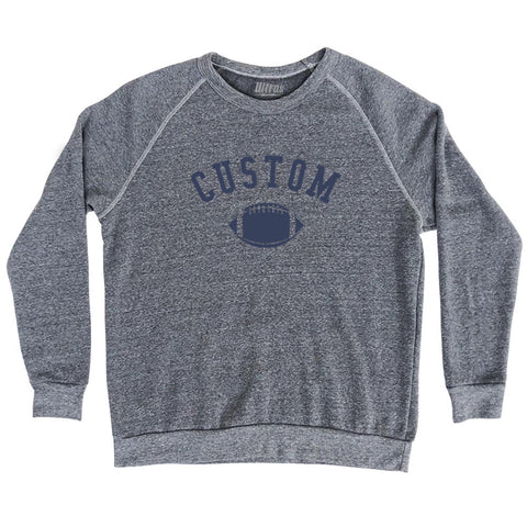Product Story: Custom Football Adult Tri-Blend SweatshirtProduct Description: Custom Football Adult Tri-Blend Sweatshirt Tri-Blend (Polyester, Rayon, Cotton) Buttery Smooth Soft Material Medium Weight Tee Soft Hand Print