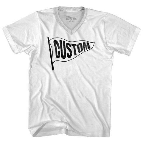 Product Story: Custom Pennant Flag Adult Cotton V-neck T-shirtProduct Description: Custom Pennant Flag Adult Cotton V-neck T-shirt Cotton Buttery Smooth Soft Material Medium Weight Tee Soft Hand Print