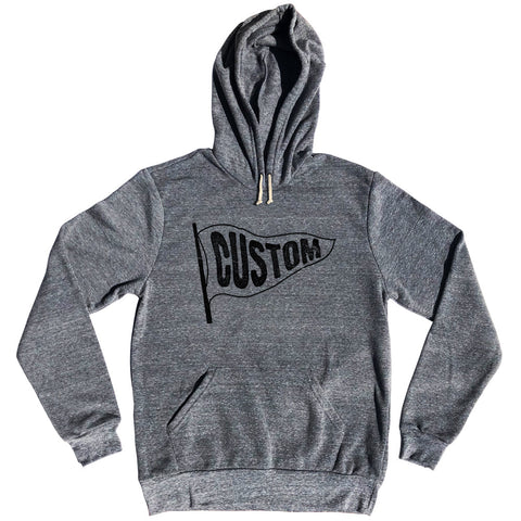 Product Story: Custom Pennant Flag Tri-Blend HoodieProduct Description: Custom Pennant Flag Tri-Blend Hoodie 6.5 oz. Tri-Blend Cozy Soft Material Pre-Shrunk Set-in sleeves Pouch front pocket Ribbed bottom band and sleeve cuffs