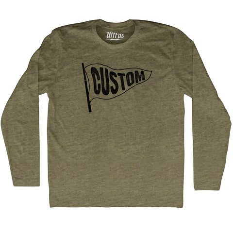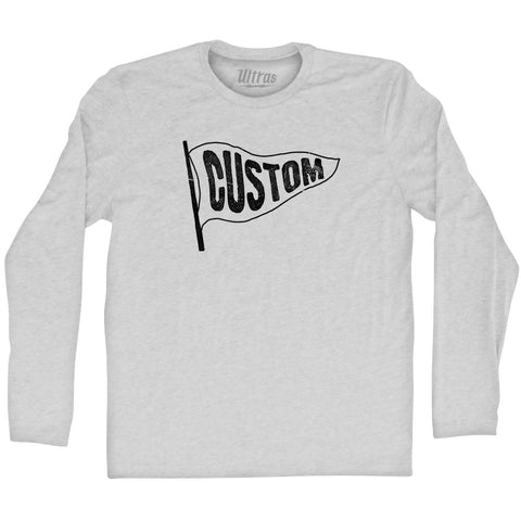 Product Story: Custom Pennant Flag Adult Tri-Blend Long Sleeve T-shirtProduct Description: Custom Pennant Flag Adult Tri-Blend Long Sleeve T-shirt Tri-Blend (Polyester, Rayon, Cotton) Buttery Smooth Soft Material Medium Weight Tee Soft Hand Print