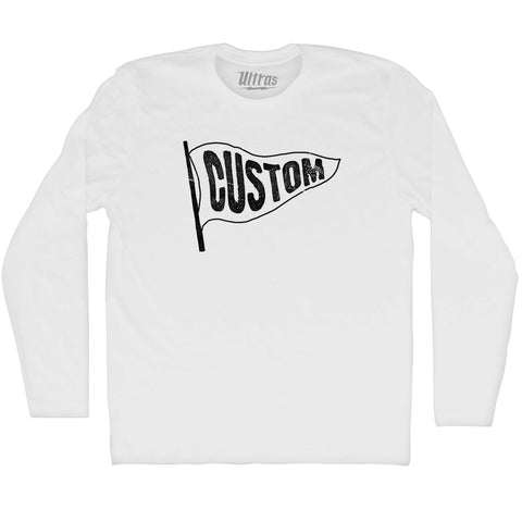 Product Story: Custom Pennant Flag Adult Cotton Long Sleeve T-shirtProduct Description: Custom Pennant Flag Adult Cotton Long Sleeve T-shirt Cotton (90% Cotton &10% Polyester) Buttery Smooth Soft Material Medium Weight Tee Soft Hand Print