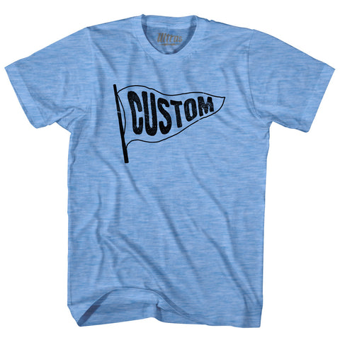 Product Story: Custom Pennant Flag Adult Tri-Blend T-shirtProduct Description: Custom Pennant Flag Adult Tri-Blend T-shirt Tri-Blend (Polyester, Rayon, Cotton) Buttery Smooth Soft Material Medium Weight Tee Soft Hand Print